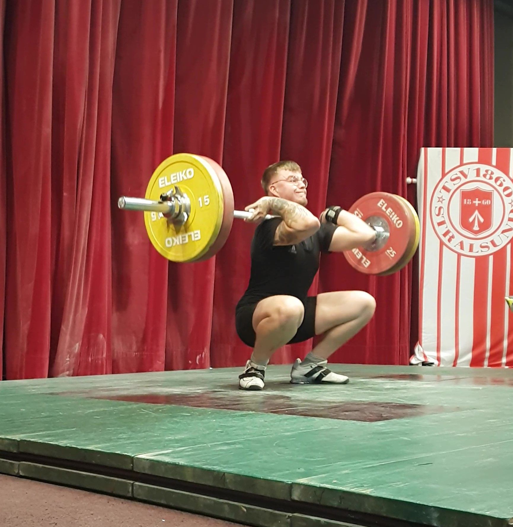 Tim wollte in der Gewichtsklasse bis 79 Kg sein Glück versuchen. Die Waage erwies sich jedoch als unüberwindbare Hürde. Sie zeigte 900 Gramm zu viel an. Dieses Ergebnis hielt Tim jedoch nicht davon ab, seine bisherigen Bestleistungen deutlich zu verbessern. Mit nunmehr 88Kg im Reißen, 110Kg im Stoßen und 198Kg im olympischen Zweikampf reichte es immerhin zum Vizemeister in der nächst höheren Gewichtsklasse bis 88Kg. Den Titel holte sich hier Malte Harder vom TSC Grün-Weiß Rostock. Malte selbst ist auch ganz knapp mit 210Kg an der DM-Norm von 218Kg gescheitert. Das gleiche Schicksal ereilte seine Vereinskameradin Svea Kutsche mit gehobenen 170Kg in der Gewichtsklasse bis 86Kg bei den Aktiven. Ihr fehlten am Ende 6Kg zur Qualifikation.